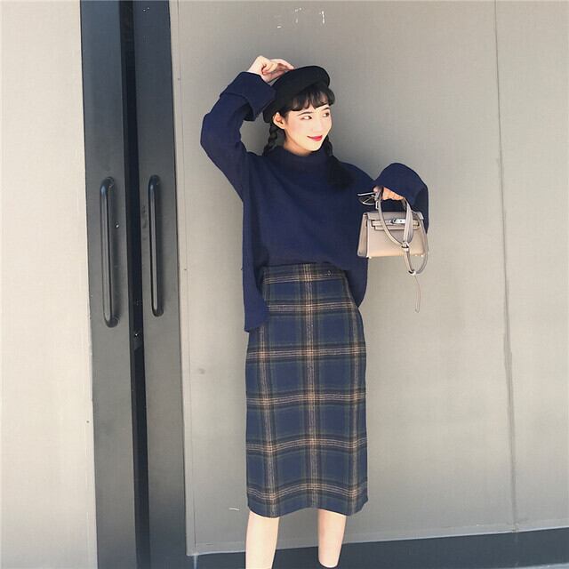 スカート 春秋冬レトロ オシャレ チェック柄 トレンド スカートRB-R3-09-BA12-NK-0100