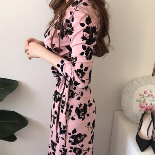 ワンピース 20代 30代 40代 秋 ピンク 花柄 ラップワンピース RB-R3-09-BA15-SA-0009