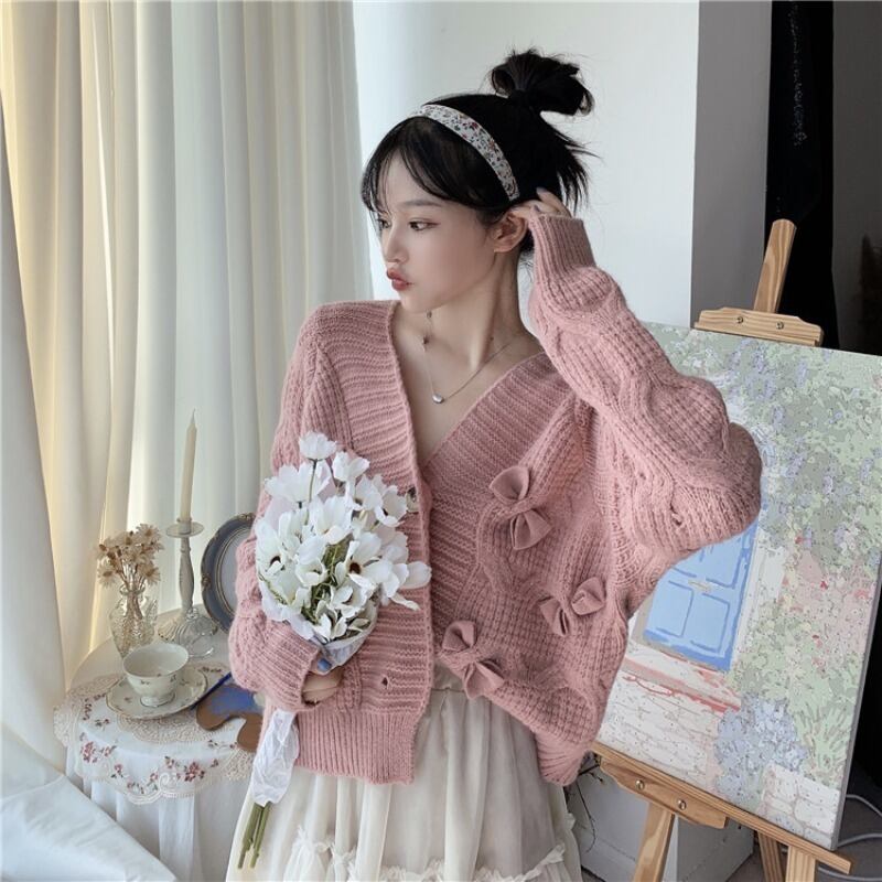 トップス 秋と冬 リボンカーディガンRB-R3-09-BA16-NK-0025
