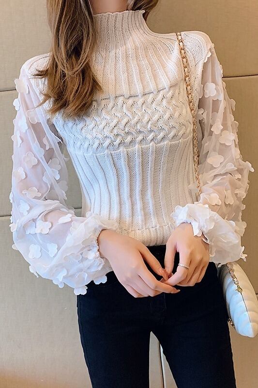 トップス 秋 パッチワークショートニットセーターRB-R3-09-BA16-NK-0026