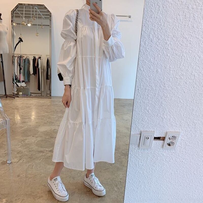 ワンピース 秋 プリーツパフスリーブシャツドレスロングスカートRB-R3-09-BA16-NK-0043