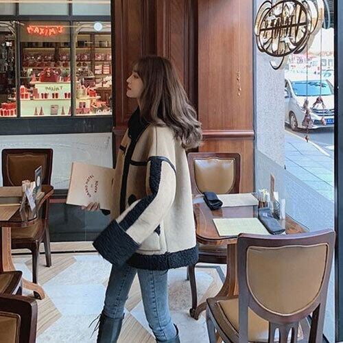 アウター 20代 30代 40代 秋 ボアジャケット レディース ブルゾン ボアコート もこもこ 韓国 ファッション オーバーサイズ ゆったり ショート丈 バイカラー ボア アウター ボアジャケット レディース ブルゾン ボアコート RB-R3-10-BA22-SA-0010