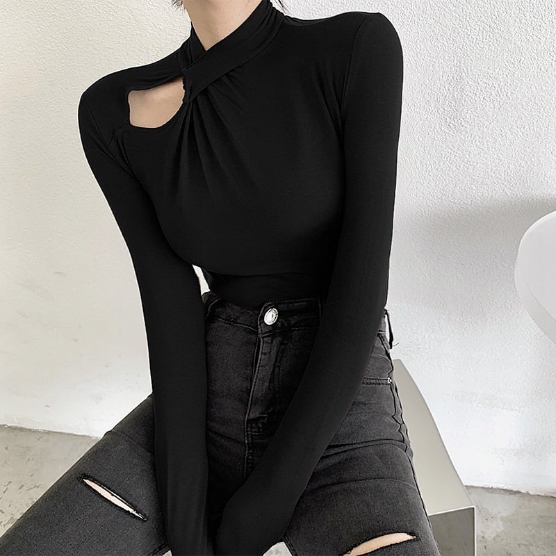 トップス 秋 ハーフネック ハーフハイカラー長袖 RB-R3-09-BA18-NK0021