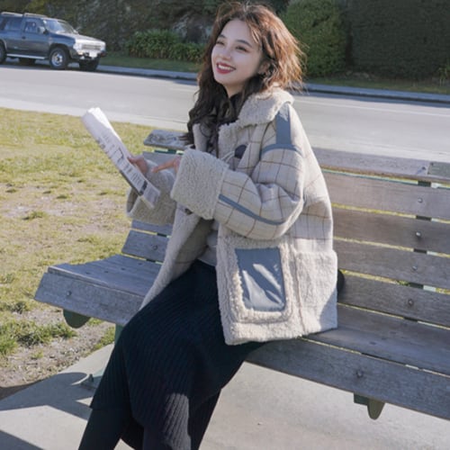 アウター 20代 30代 40代 秋 コート レディースコート レディース 総柄コート ドロップショルダー 配色 ボア かわいい ボタン オーバーサイズ チェック ルーズ コート レディースコート レディース 総柄コート RB-R3-10-BA22-SA-0037