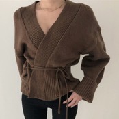 トップス 秋冬 レトロ ウエスト マーク リブ カーディガン RB-R3-09-BA18-NK0029