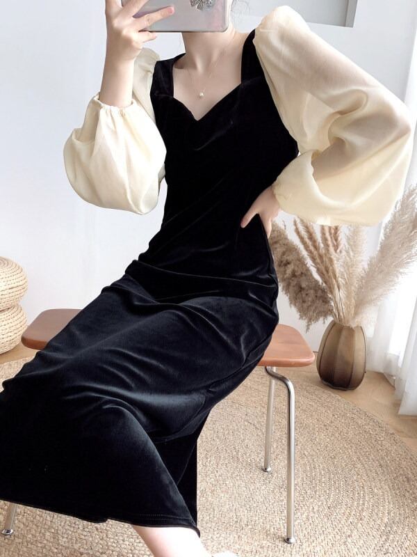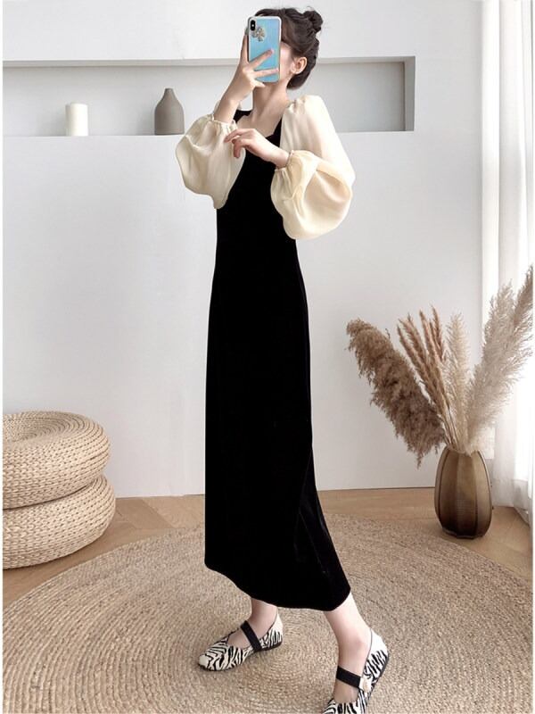 ワンピース 秋冬 パフスリーブ 切り替えRB-R3-09-BA18-NK0043
