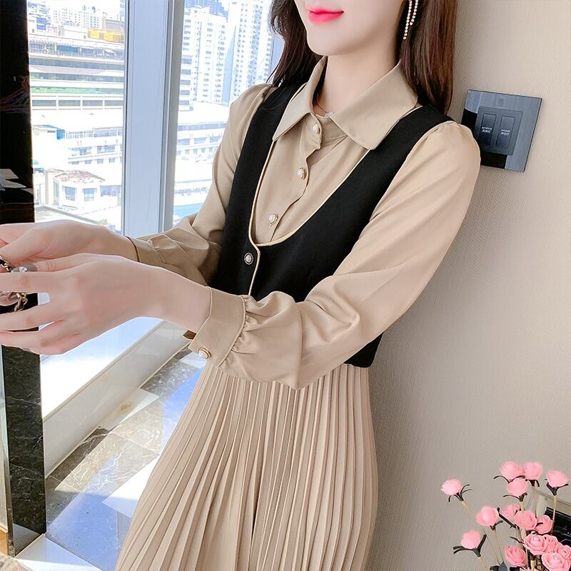 ワンピース 秋冬 プリーツ チョッキ フレンチレトロ RB-R3-09-BA18-NK0044