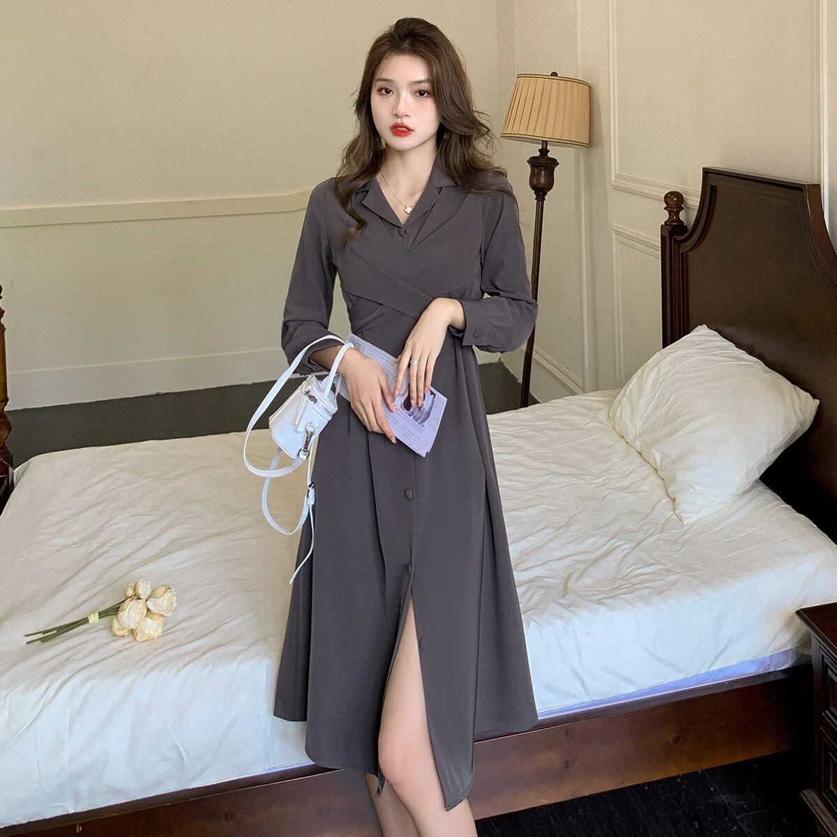 ワンピース 秋 クロススリット 長袖 シャツ ドレスRB-R3-09-BA18-NK0047