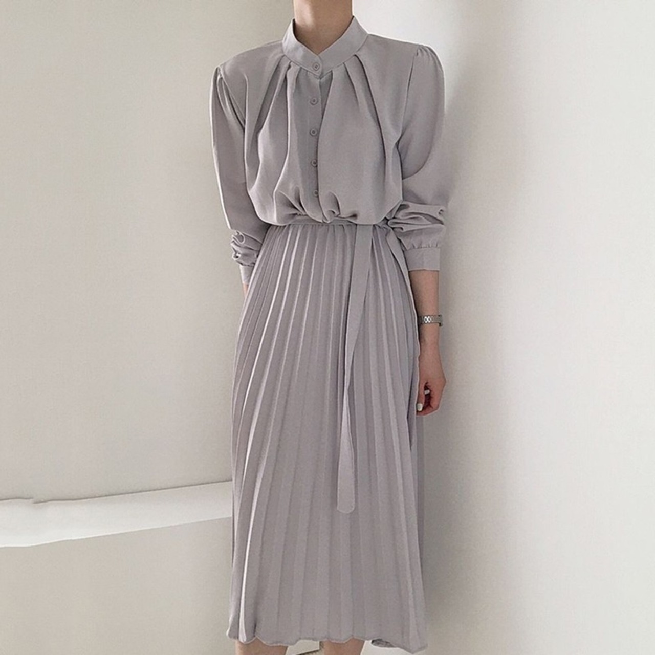 ワンピース プリーツ シャツ 細いウエストロングRB-R3-09-BA18-NK0051