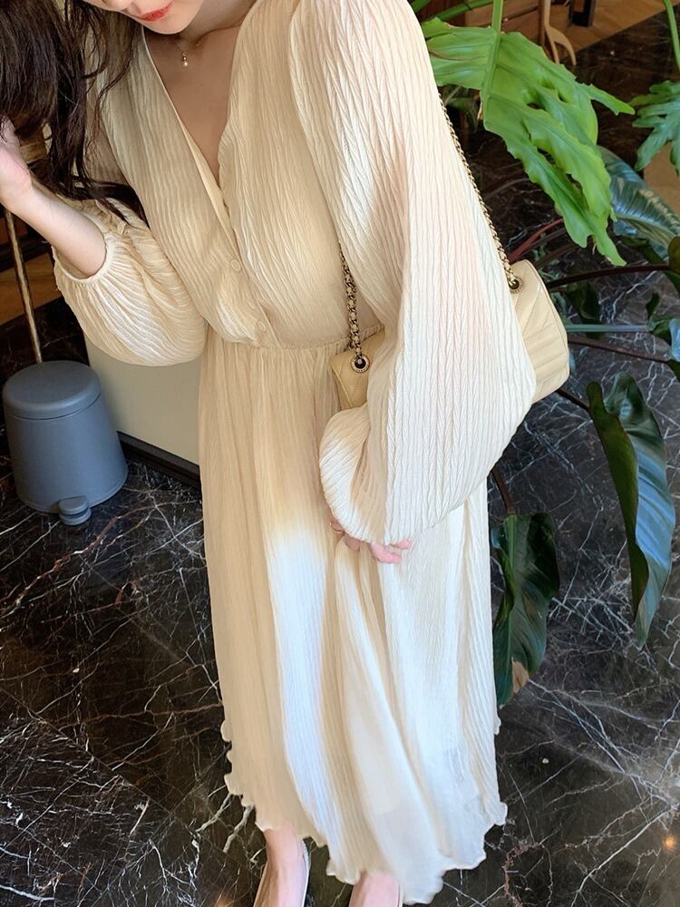 ワンピース 秋 ワッシャー 袖 ボリューム フレンチ ウエストRB-R3-09-BA18-NK0052