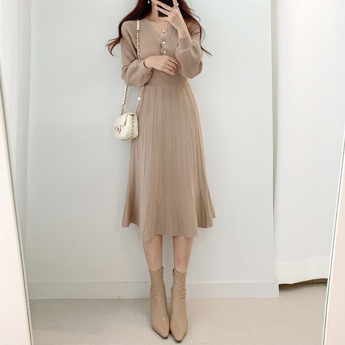 ワンピース ミドル丈 ハイウエスト セータードレスRB-R3-09-BA18-NK0054