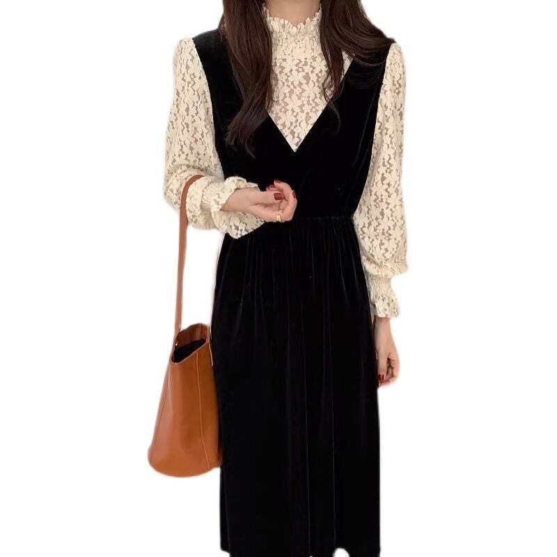 ワンピース ブラウス ドッキング ウエストツーピース長袖ドレス RB-R3-09-BA18-NK0060