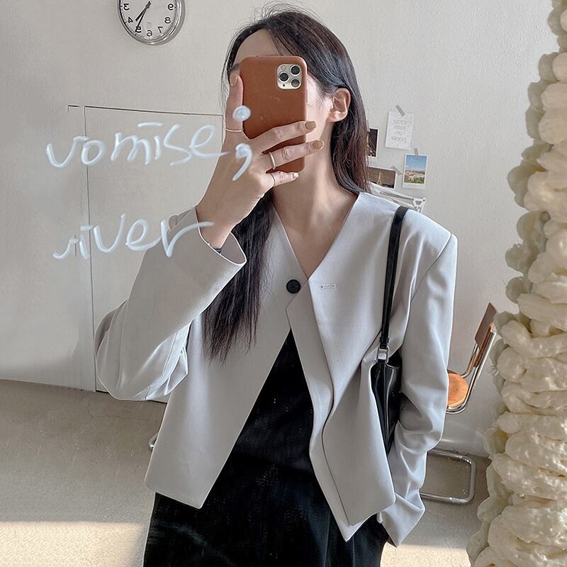 アウター 秋 ワンボタン ノーカラージャケットVネックRB-R3-09-BA18-NK0078