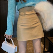 スカート秋 シンプルレザーミニ丈 ハイウエスト RB-R3-09-BA18-NK0089