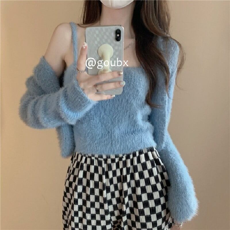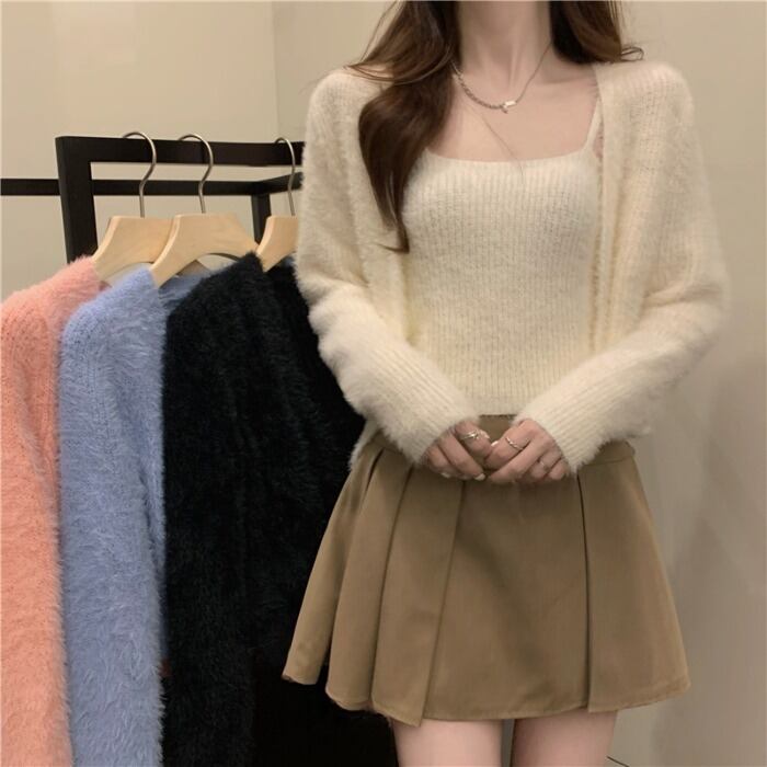 トップス 秋 ファーニットキャミ+カーディガンSETRB-R3-11-BA13-NK-0005