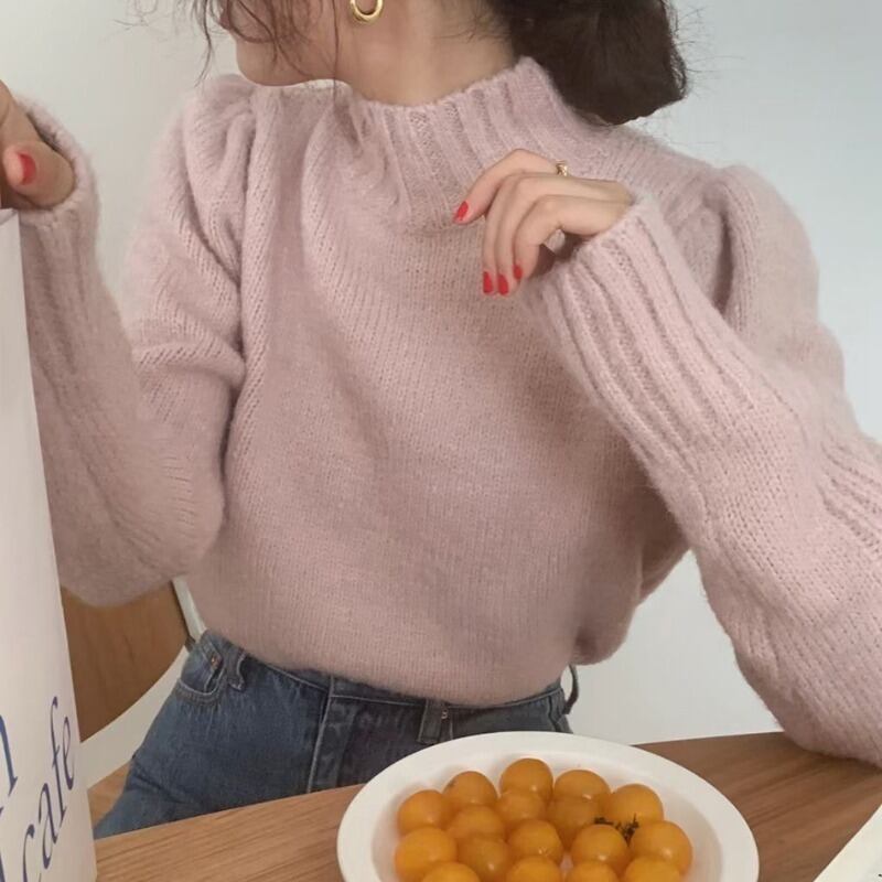 冬 パフスリーブ プルオーバー ソフト ワックス ニットセーターRB-R3-11-BA13-NK-0026