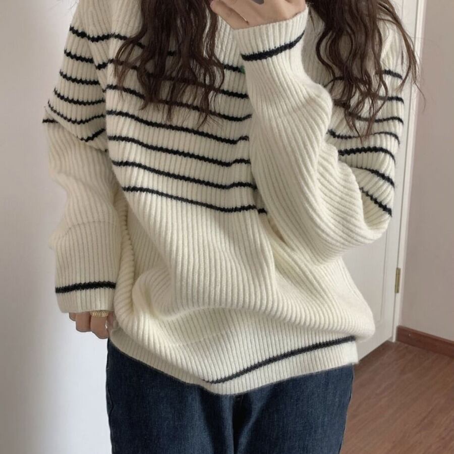 トップス カラー ブロッキング ストライプ セーター秋冬RB-R3-11-BA13-NK-0045