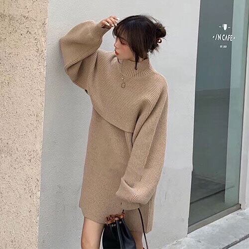 セットアップ 韓国風 20代 30代 40代 秋 韓国ファッション ニット セットアップ パフスリーブ セーター+ワンピース RB-R3-11-BA14-SA-0001