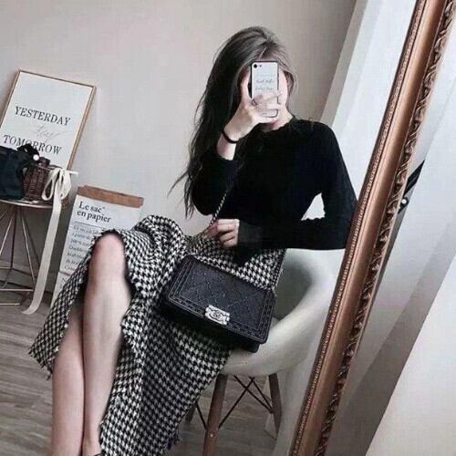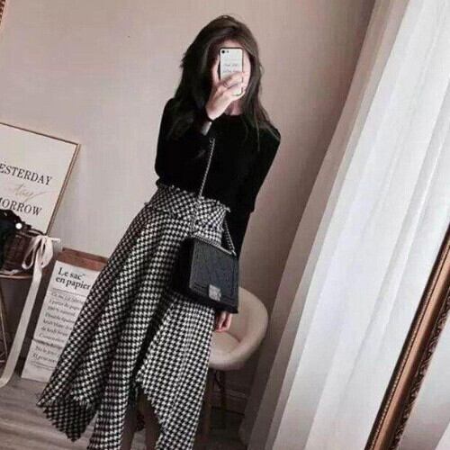 セットアップ 韓国風 秋 冬 20代 30代 40代 女子力抜群 セットアップ 無地 セーター+千鳥格子イレギュラースカート RB-R3-11-BA14-SA-0012