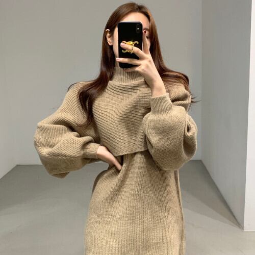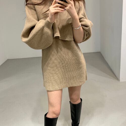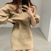 セットアップ 韓国風 秋 冬 20代 30代 40代 好感度抜群 セットアップ パフスリーブ セーター+ワンピース 2色 RB-R3-11-BA14-SA-0014