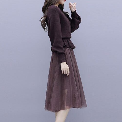 セットアップ 韓国風 秋 冬 20代 30代 40代 美人度アップ カシュクール ニット セーター+チュールスカート 2色 RB-R3-11-BA14-SA-0019