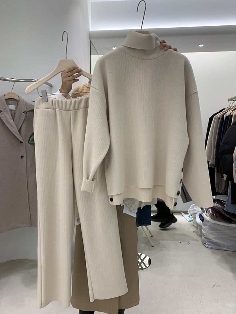 セットアップ レディース ニットスカート ひざ丈 ニットパンツ ワイドフレア パンツ ウエストゴム ニットトップス セットアップRB-R3-11-RT01-NK-0022