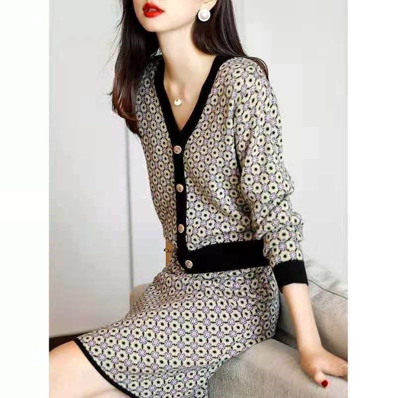 ニットセットアップ レディース 40代 秋冬 長袖 ニットカーディガン ニットタイトスカート チェック柄 RB-R3-11-RT01-NK-0033