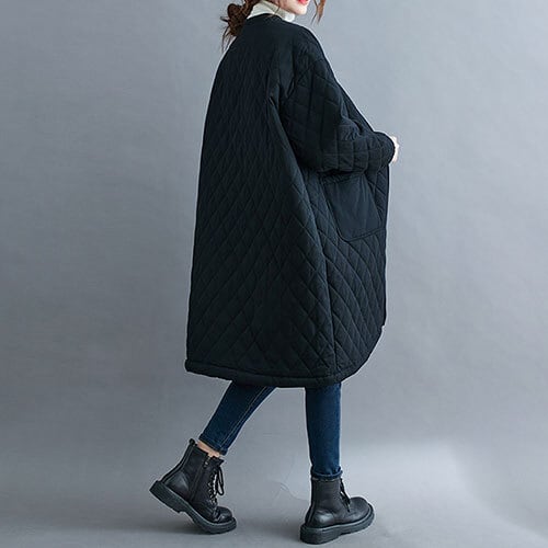 韓国 キルティング 20代 30代 40代 キルティングコート ロングコート チュニック ジャケット トップス レディース Vネック 無地 長袖 保温 ゆったり 体型カパー 防寒 カジュアル シンプル 冬 RB-R3-12-YS01-SA-0021