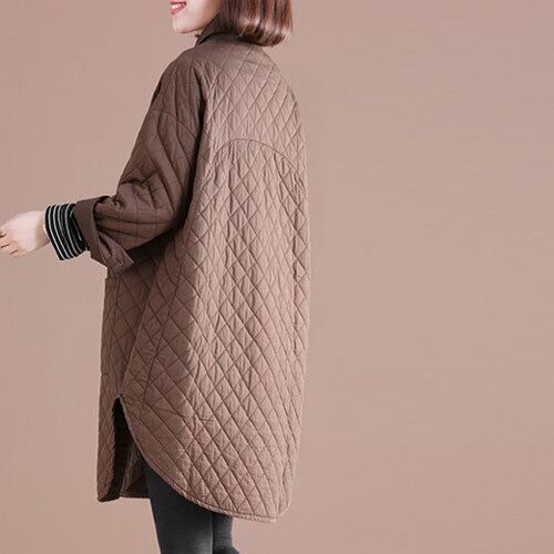 韓国 キルティング 20代 30代 40代 キルティングコート コート ロングコート 秋冬 ジャケット レディース ロング丈 長袖 無地 折り襟 ボタン ゆったり 体型カバー アウター カジュアル風 RB-R3-12-YS01-SA-0053
