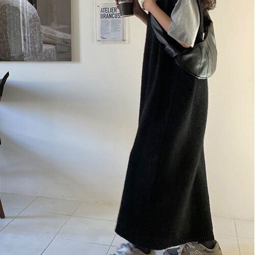 ニットワンピース レディース 秋物 ウィンターセーター Aラインスカート Vネック ロング オータム 冬物 ミドル丈 RB-R4-01-BA-SA-0002