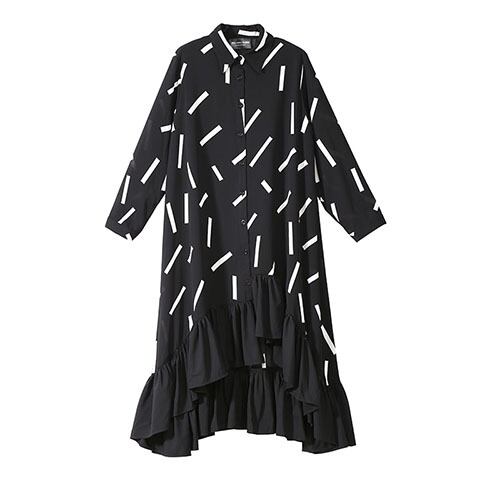 大きめサイズ ストライプ ラッフルスカート ワンピース ルーズ スタイル RB-R4-01-BA-SA-0019