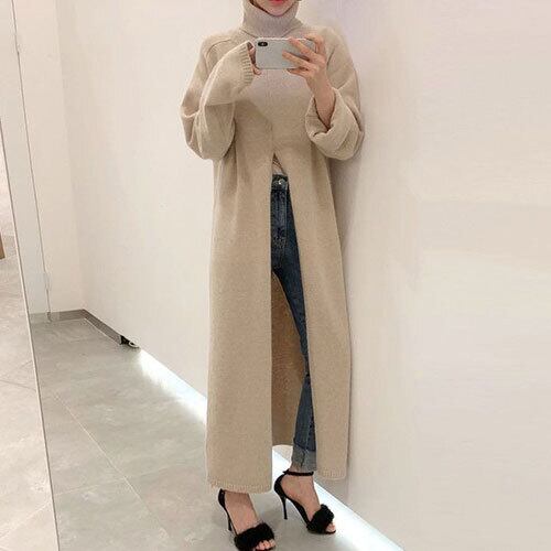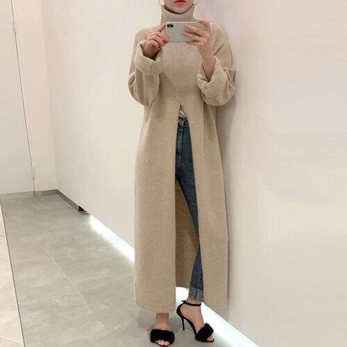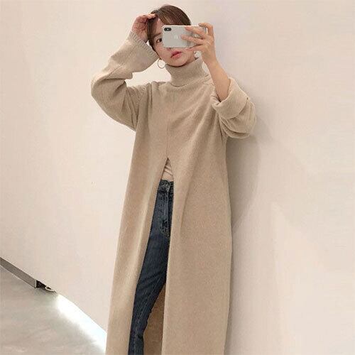 ハイネック スリット ゆったり ロング丈 ニット ワンピース おしゃれ!人気 RB-R4-01-BA-SA-0030
