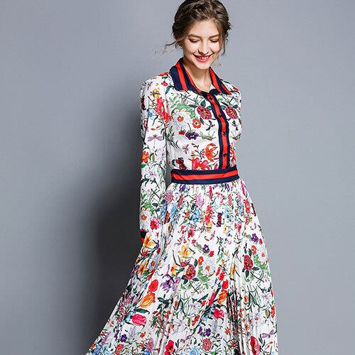 ハイウエスト 花柄 襟付きロングワンピース Aライン RB-R4-01-BA-SA-0059