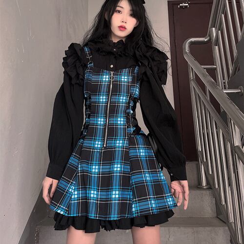 ワンピース サイドレースアップ リボン ブルーチェックスカート RB-R4-01-BA-SA-0071