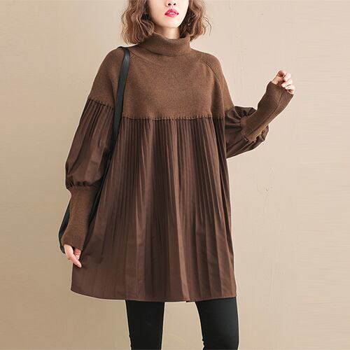 ワンピース トップス タートルネック スタイル プリーツ レディース スリーブ シャツ ステッチ ニットセーター RB-R4-01-BA-SA-0118
