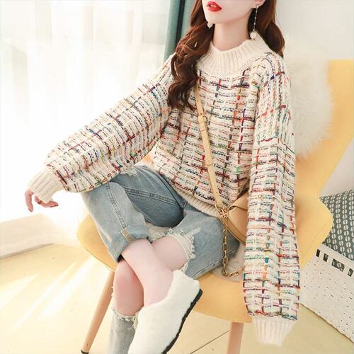セーター ラウンドネック ランタンスリーブ 秋冬 厚手 ニット・セーター・トップス 新作 ゆったり RB-R4-01-BA-SA-0123