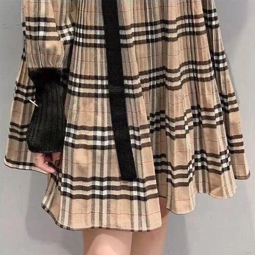 【dress】着回し力抜群 カジュアルチェック柄 切り替え ニットワンピース ミドル丈 RB-R4-01-BA-SA-0143