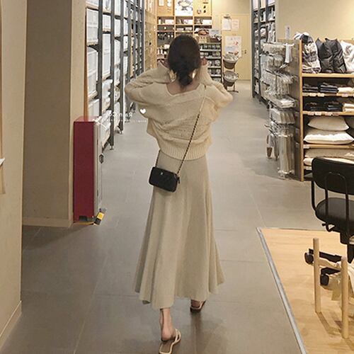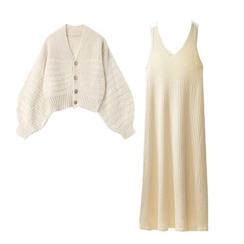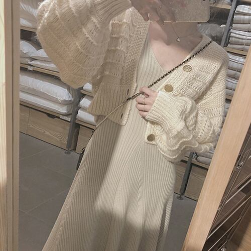 【送料無料】セットアップ ざっくりニット+ワンピ カーディガン ニットワンピ 2点セット ナチュラル モテ服 レイヤード RB-R4-01-BA-SA-0163