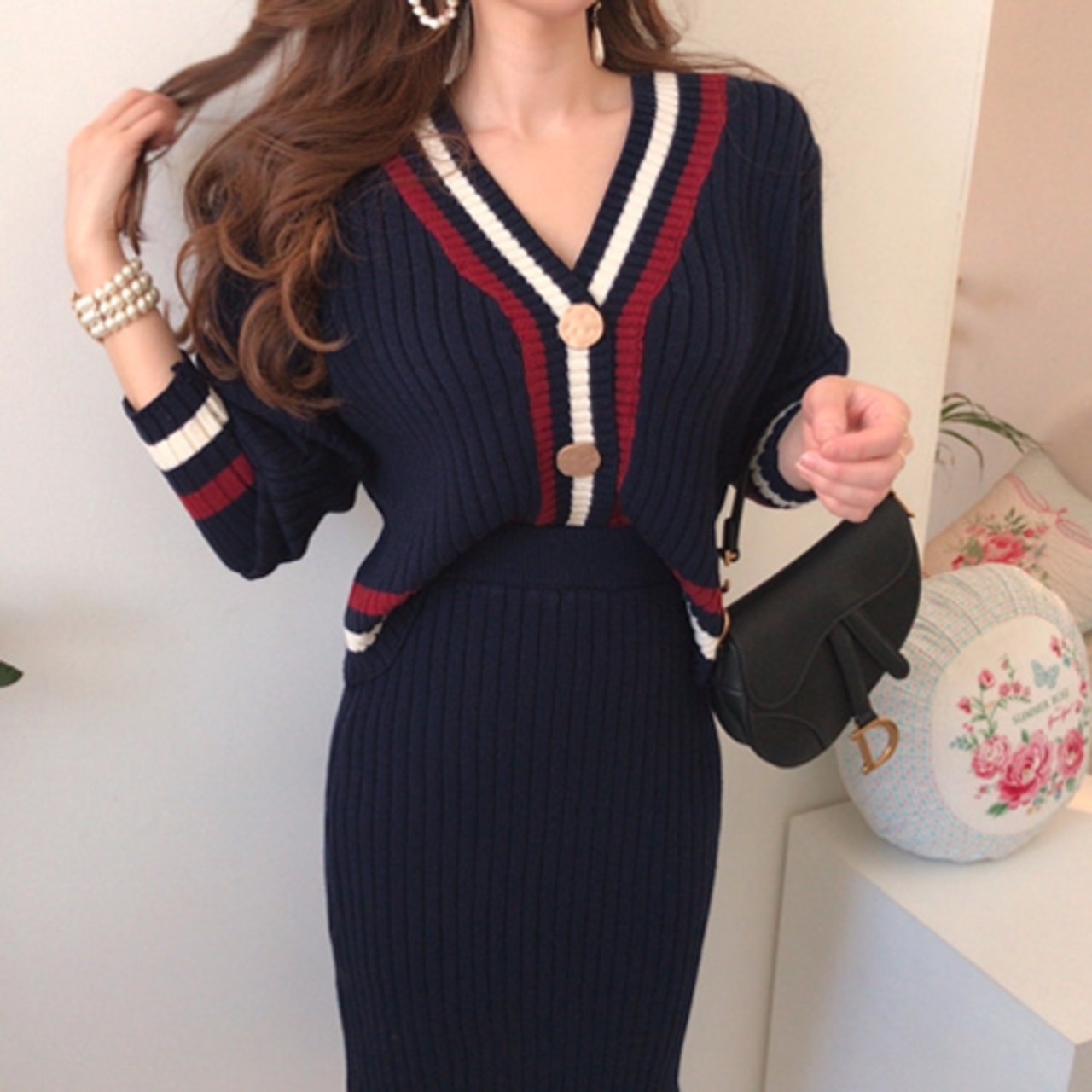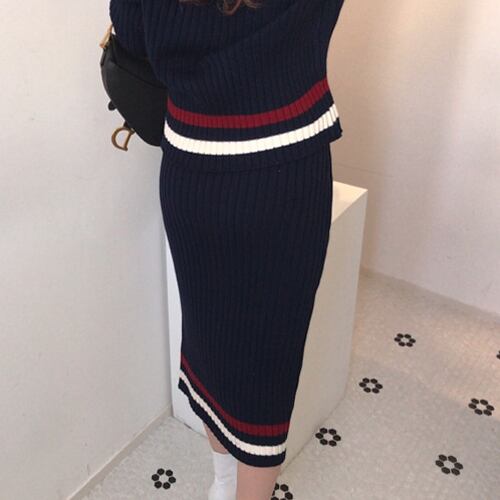 ラインニット 2ピースセットアップ ニットカーディガン Vネック ハイウエスト RB-R4-01-BA-SA-0164