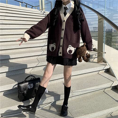 秋冬物 レディース アウター Vネック ニットカーディガン 可愛いくま RB-R4-01-BA-SA-0166