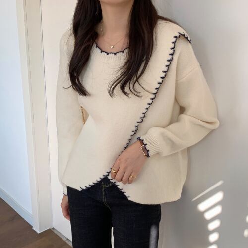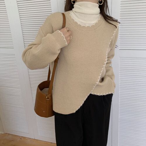 セーター ニット スカラップ フリル フリンジ コットン エレガント おしゃれ 秋冬 RB-R4-01-BA-SA-0173