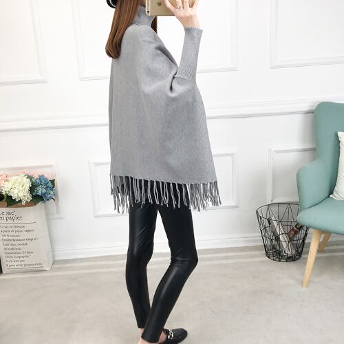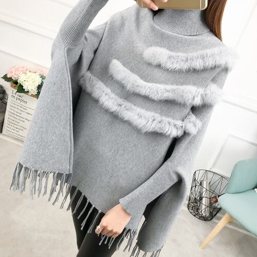 ポンチョ ニット タートルネック ファー フリンジ ボリューム おしゃれ エレガント ポンチョ 全4色 秋冬 RB-R4-01-BA-SA-0175