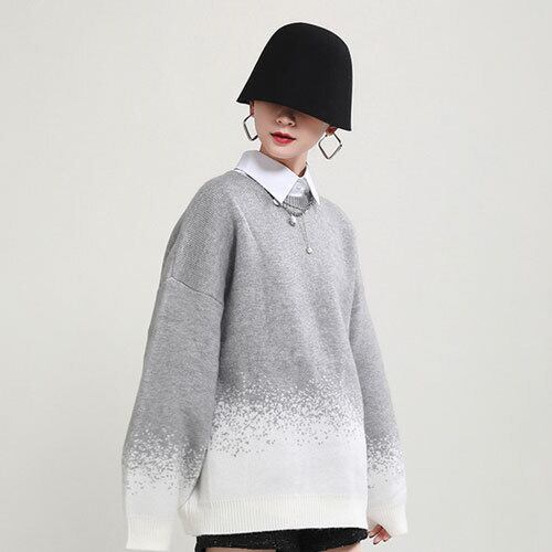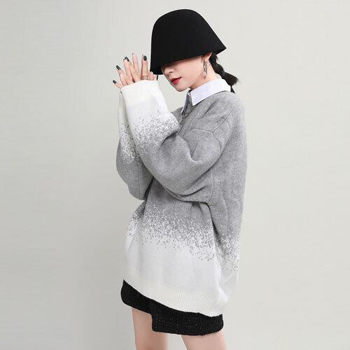 セーター ニット グラデーション バイカラーラウンドネック ゆったり 大人きれいめ シック オルチャン 原宿系 モード系 10代 20代 秋冬 RB-R4-01-BA-SA-0181
