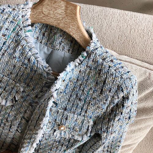 ノーカラー 春 スプリング ジャケット ツイード シングルバックル 格子縞 エレガント 大人 RB-R4-02-BY-SA-0006