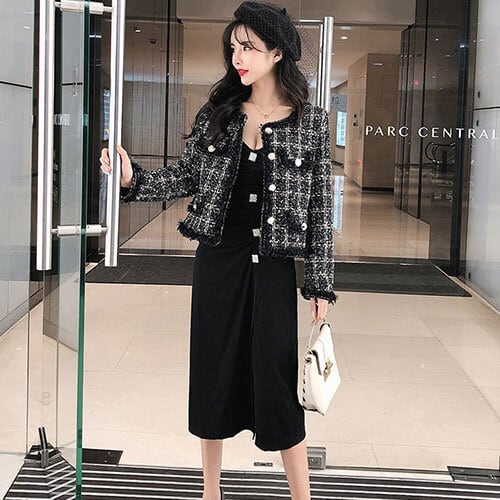 ノーカラー 春 スプリング ジャケット フリンジ ツイード 羽織り 配色 大人 RB-R4-02-BY-SA-0010
