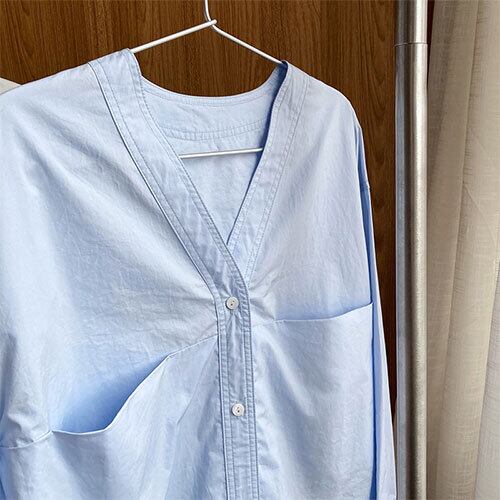 ノーカラー 春 スプリング Vネック ポケット オーバー シャツ ブラウス RB-R4-02-BY-SA-0016