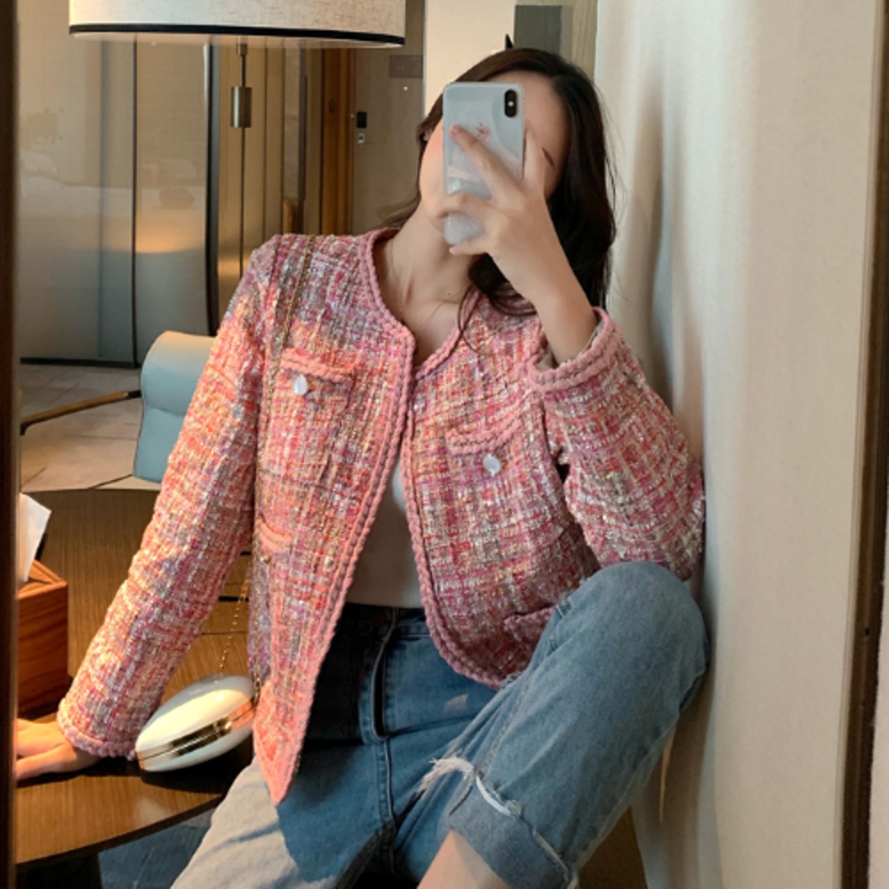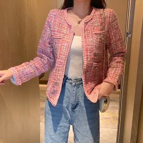 ノーカラー 春 スプリング ツイードジャケット ショート チェック エレガント RB-R4-02-BY-SA-0014