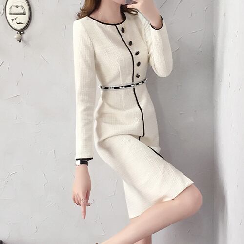 ノーカラー 春 スプリング ワンピース タイト 長袖 フォーマル エレガント 韓国 RB-R4-02-BY-SA-0020