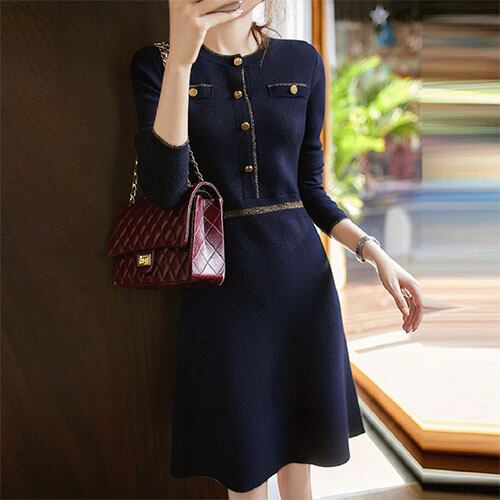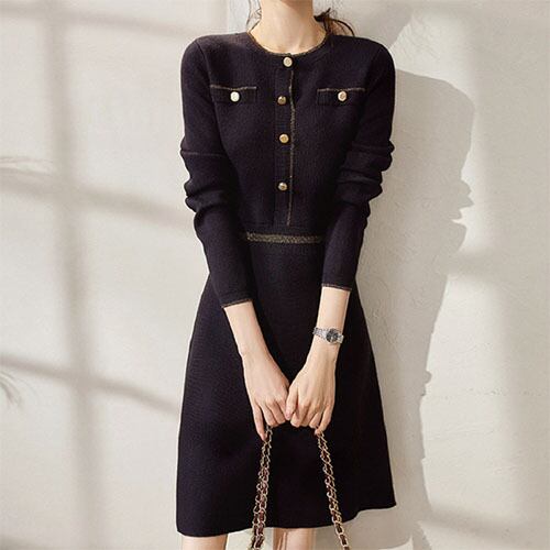 ノーカラー 春 スプリング ワンピ―ス ウエストマーク ニット フェミニン 韓国 RB-R4-02-BY-SA-0037