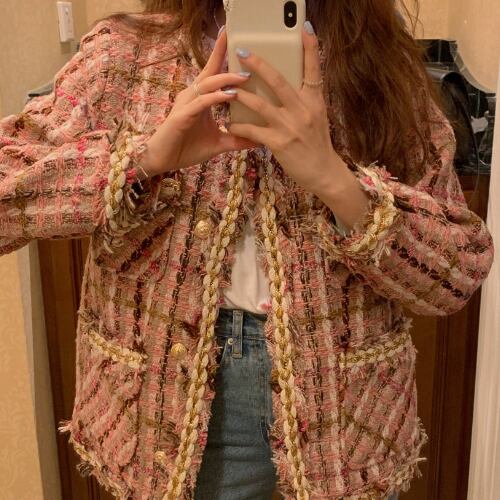 ノーカラー 春 スプリング ジャケット レトロ ツイード 全2色 ノーカラー 韓国 ジャケット RB-R4-02-BY-SA-0042